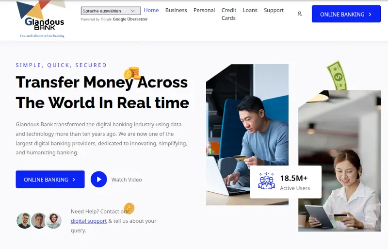 Nach Hugos Nachfrage wird’s „offiziell“: Die Professorin verweist plötzlich auf eine Glandous Bank samt Kontaktadresse @accountant.com und einer „Web-Filiale“. Klingt schick – ist aber genau das Gegenteil von seriös. Keine @europa.eu-Adresse, dafür eine dubiose Dritt-Domain und der Versuch, persönliche Daten direkt an eine fremde Bank zu lenken. Der vermeintliche EU-Bezug (Art. 214 AEUV, IWF, UN) soll Seriosität vorgaukeln, ersetzt aber keinen echten Nachweis einer EU-Behörde.