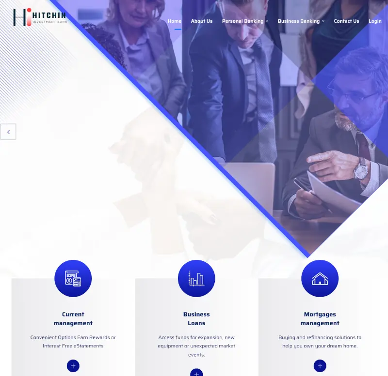 Ein paar stockfotos von Menschen, die sehr angestrengt auf einen Laptop starren, dazu ein Logo, das wirkt wie aus einem „Create Your Own Bank in 5 Minutes“-Baukasten – perfekt abgerundet mit Texten wie „Mortgages management“ und „Convenient Options Earn Rewards“, die offenbar direkt von einem müden Google-Translator aus dem Jahr 2011 ausgespuckt wurden.