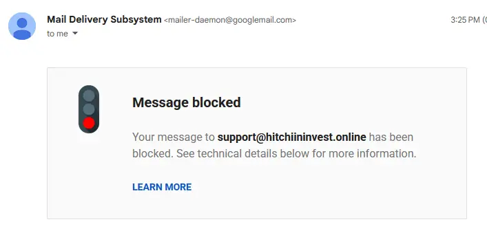 Und dann war plötzlich Schluss. Keine Antwort mehr, kein neues Formular, kein weiteres Offshore-Märchen. Stattdessen meldet sich ganz offiziell das Mail Delivery Subsystem von Google: Nachricht blockiert. 🚫